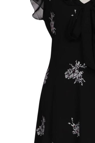 | Détails | Broderie, Chiffon, Manches courtes, Encolure en V, Fermeture éclair/boutons arrière, Fleuri |
