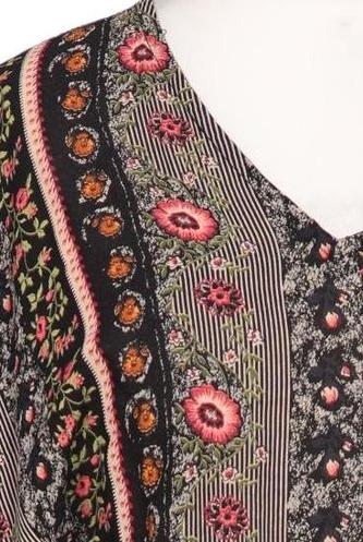 | Détails | Chiffon, Manches courtes, Encolure en V, Sans fermeture, Fleuri, Rayures |