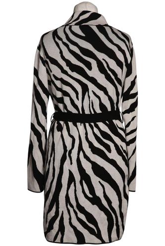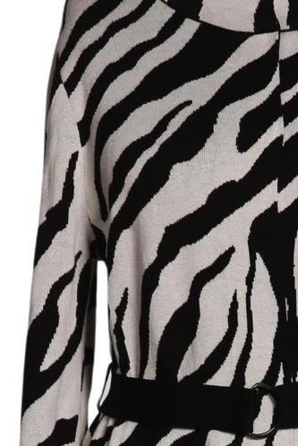 | Détails | Grosse maille, Manches longues, Ceinture, Col rond, Patte de boutonnage avant, Zèbre |