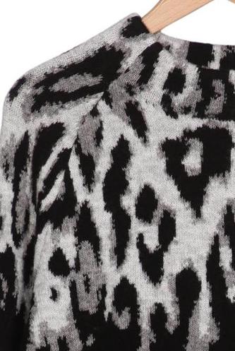 | Détails | Grosse maille, Manches longues, Col rond, Léopard |