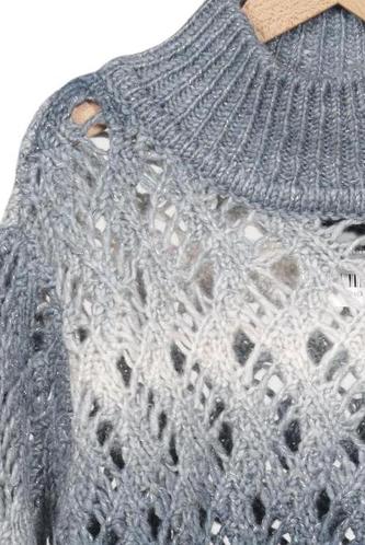 | Détails | Découpes, Grosse maille, Manches longues, Col roulé |