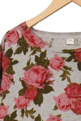 | Détails | Grosse maille, Manches longues, Col rond, Fleuri |