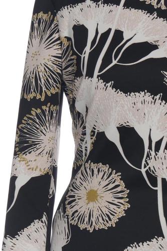| Détails | Jersey, Manches trois-quarts, Col rond, Fermeture éclair/boutons arrière, Fleuri |
