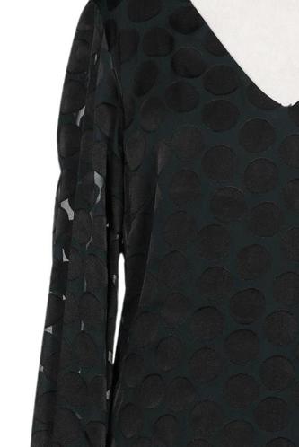 | Détails | Satin, Manches longues, Encolure en V, Fermeture éclair/boutons arrière, À pois |