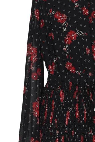 | Détails | Chiffon, Manches longues, Ceinture, Col rond, Patte de boutonnage avant, Fleuri, À pois |