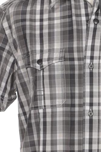 | Détails | Manches courtes, Patte de boutonnage avant, Manchettes à revers, Carreaux |