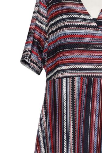 | Détails | Grosse maille, Manches courtes, Encolure en V, Rayures |