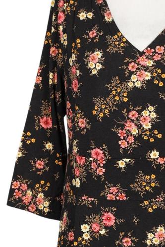 | Détails | Jersey, Manches trois-quarts, Encolure en V, Fleuri |