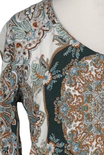 | Détails | Chiffon, Manches trois-quarts, Encolure en V, Sans fermeture, Paisley |