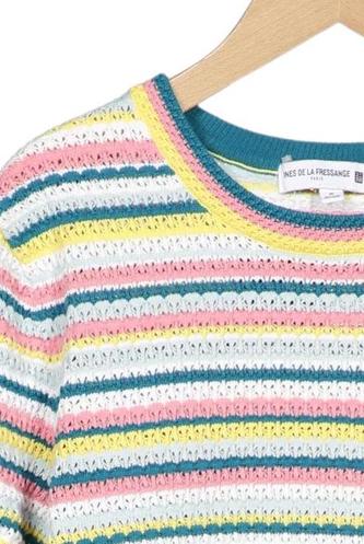 | Détails | Grosse maille, Manches courtes, Col rond, Rayures |