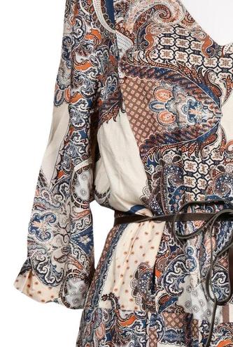 | Détails | Jersey, Manches trois-quarts, Ceinture, Encolure en V, Paisley |