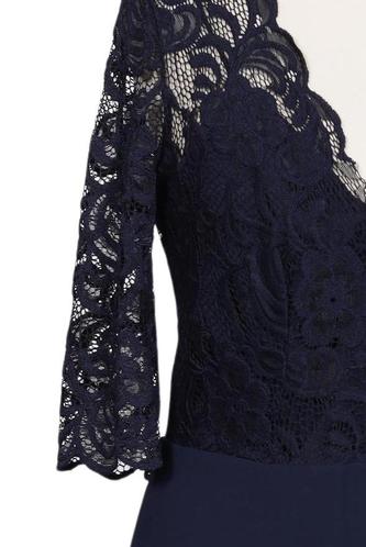 | Détails | Jersey, Dentelles, Manches trois-quarts, Encolure en V, Fermeture éclair/boutons arrière, Uni |