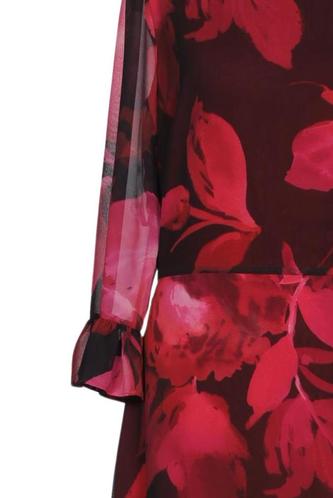 | Détails | volants, Chiffon, Manches trois-quarts, Col rond, Fermeture éclair/boutons arrière, Fleuri |